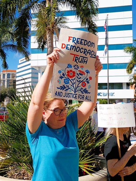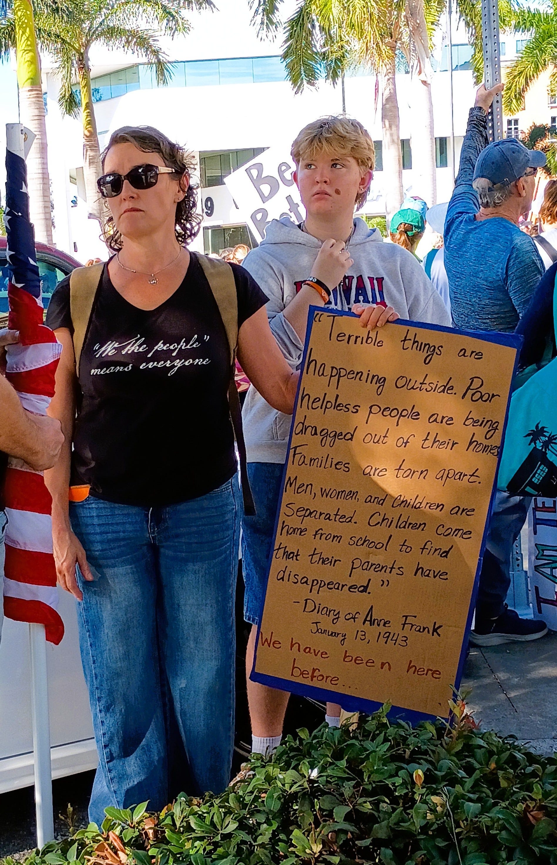 Back at home in Sarasota, where those marching in protest earlier today may now be planning dinner, at the beach or enjoying all that this arts town has to offer, it’s the wise words of Richardson that resonate: “We must vote in November. This must end!”