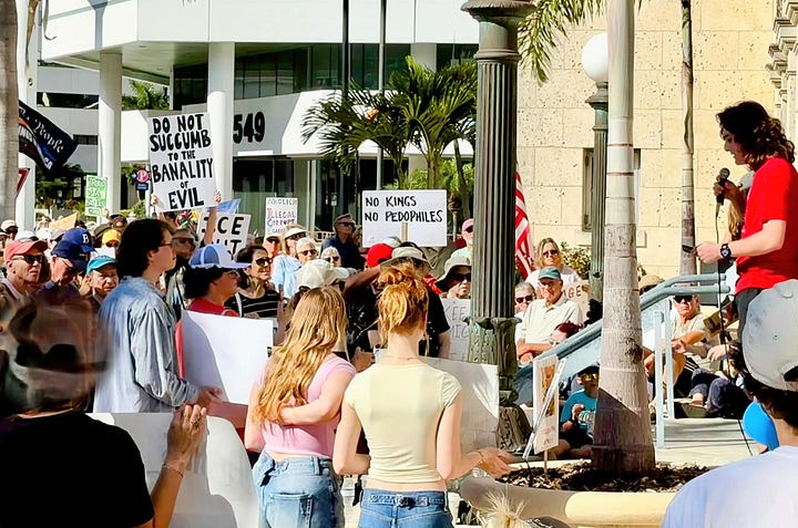 In Sarasota, Kennedy Cole, the Political director of the SRQ Next Gen Democrats made a rousing speech at the rally.