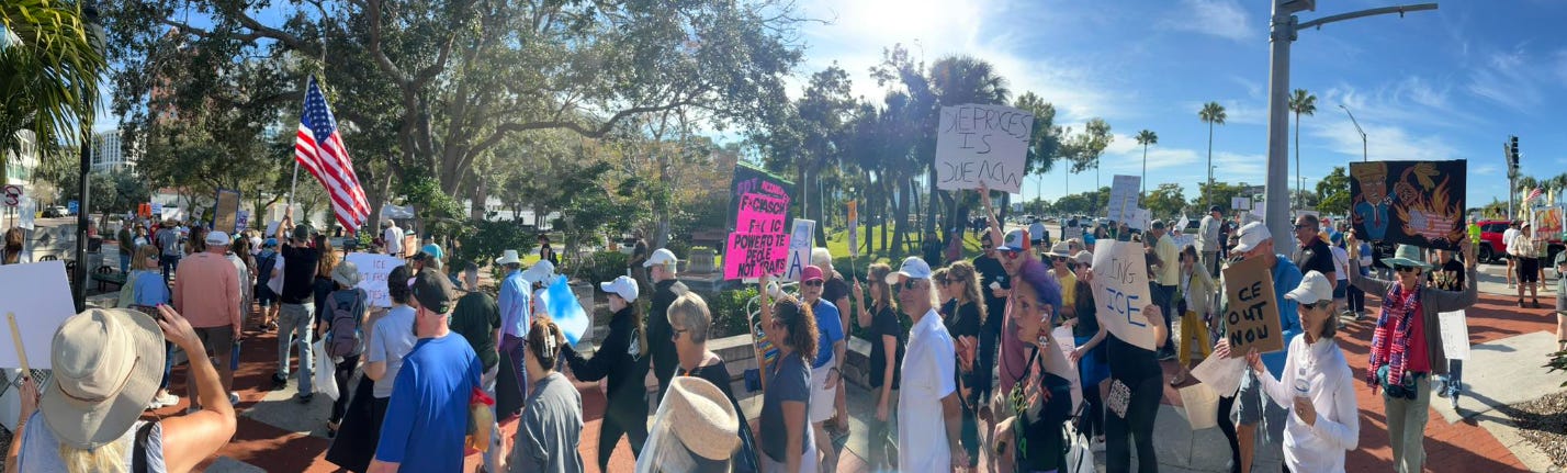 On January 24, a peaceful Free America rally took place in Sarasota, Florida. It was a beautiful clear day with temperatures in the mid-70’s and as always, beautiful views that would make even the angels envious.