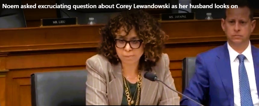 If you want to take Noem for her word that she didn’t know what was going on, after being married to her high school sweetheart since 1991, then she would have had to have been an absentee wife for decades. The woman who called protesting Americans “Domestic terrorists” who were killed on her watch doesn’t deserve to ever again be believed. (She never apologized.)